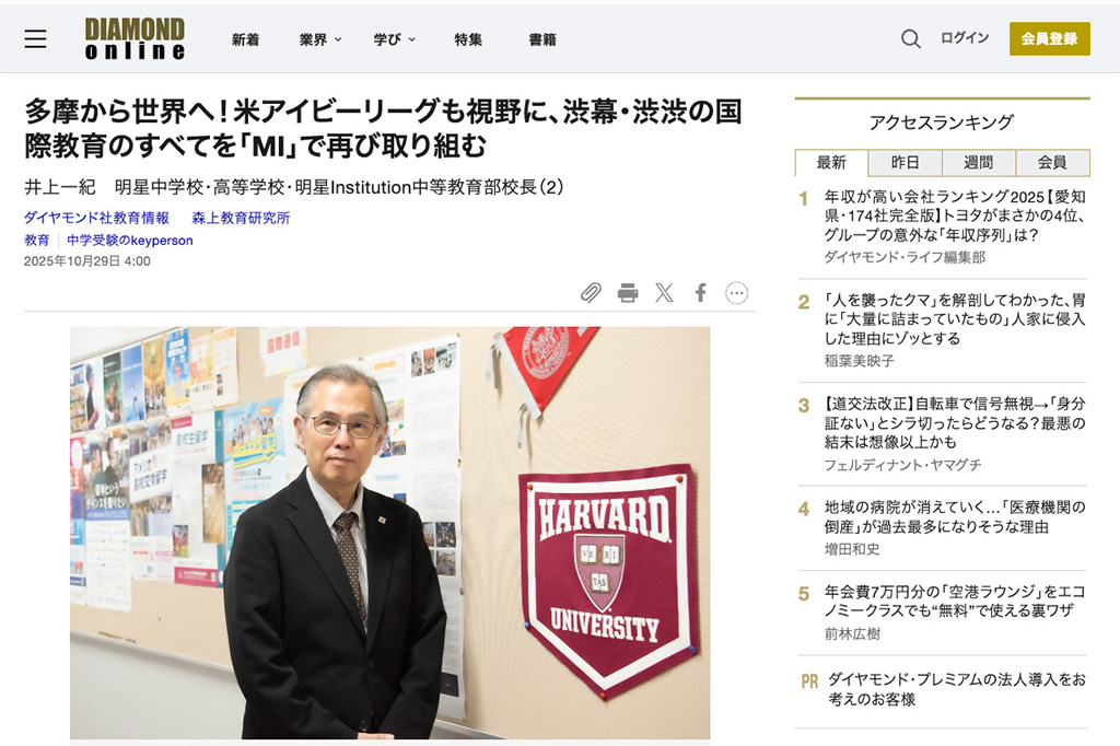 「DIAMOND online」(10月29日)に本校の記事が掲載されました