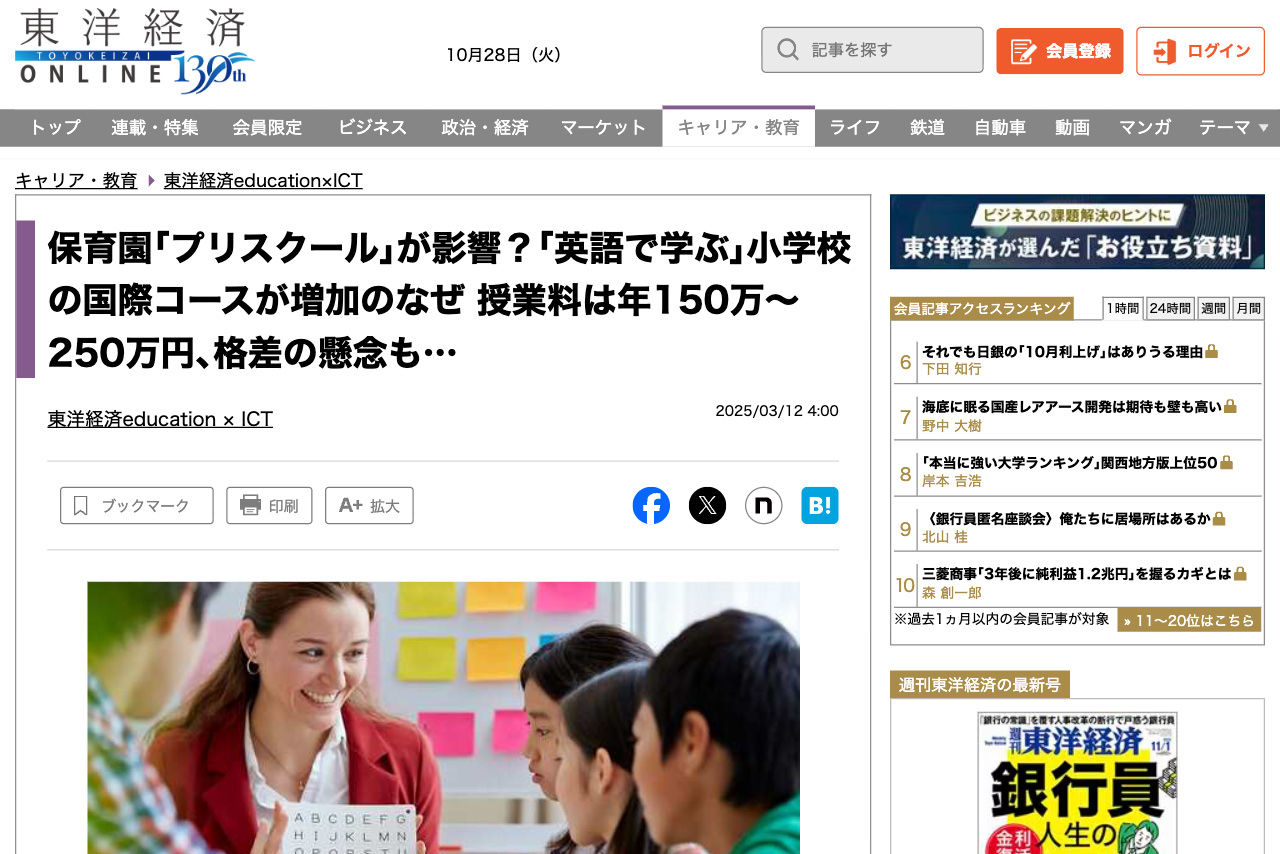 「東洋経済 ONLINE」(3月12日)に本校の記事が掲載されました